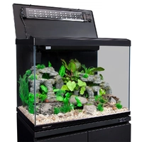 The tank features clean lines and a contemporary satin black trim, making it a stylish addition to any home or office. The hinged hood design allows for easy access during feeding and maintenance.