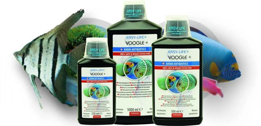 Voogle is a natural fish health treatment developed by Easy Life to boost the immune system of aquarium fish. It helps fish recover from infections, diseases, and wounds by enhancing their resistance to pathogens like bacteria, fungi, and parasites. Since it’s based on natural plant extracts and vitamins, it’s considered safe for fish, shrimp, and plants and doesn’t harm the biological filter in the aquarium.