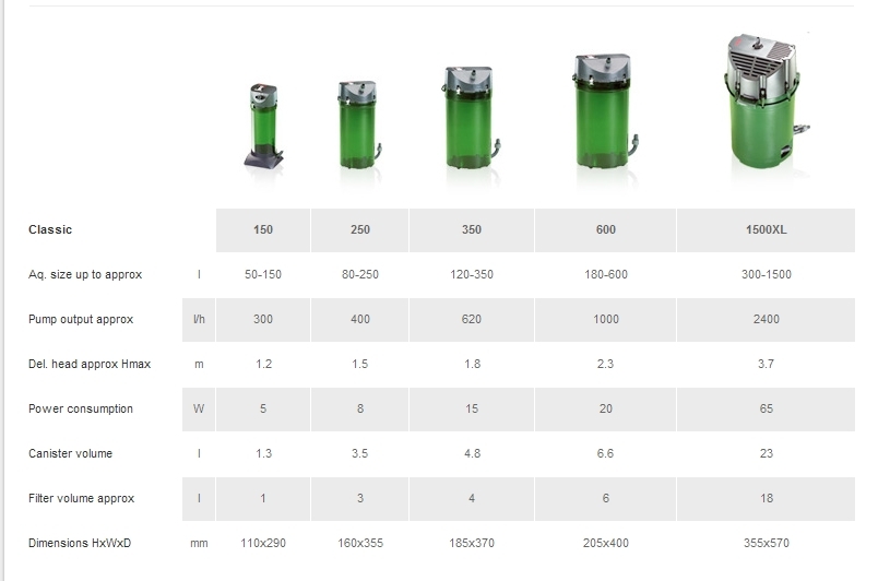 By choosing a classic you won’t go wrong. Because you have chosen a reliable, millionfold tried and tested piece of equipment. All models perform to the highest quality standards. First class components and carefully matched features ensure perfect pump and filter performance. Additionally, you have the proverbial EHEIM quiet running, robust durability and low en-ergy consumption. You will be very satisfied. There are 5 models for aquariums from 50 up to 1500 litres –with various equipment.