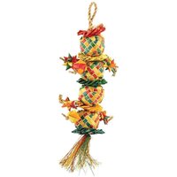 This unique chew toy is two toys in one. The outer layer is made of crunchy, hand-woven palm leaf, satisfying your bird's natural instinct to chew and shred. Inside, there's a surprise! Natural fibers and shredders are tied to a rope, providing even more chewing fun and keeping your bird occupied for hours.