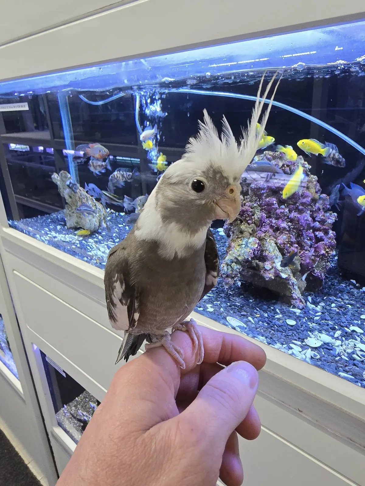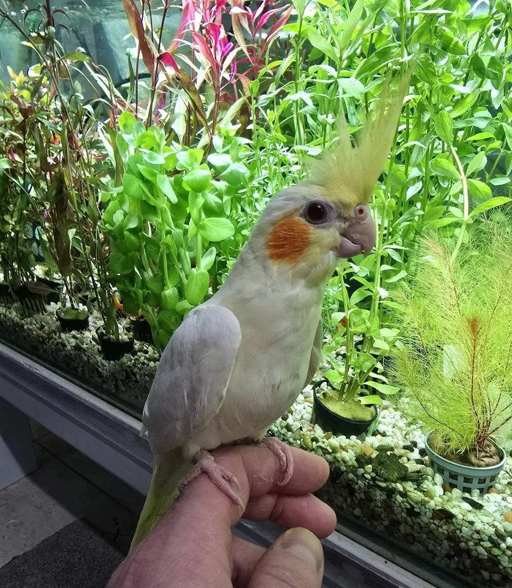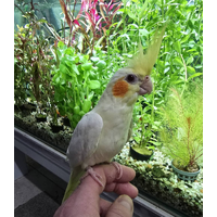 The Cockatiel is an unusual member of the cockatoo family. It is small in size, and has a slender body and long pointed tail, which is more characteristic of the smaller parrots. Its plumage is mostly grey, paler below, with a white wing patch, orange cheeks and a distinctive pointed crest.