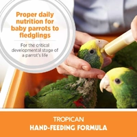 Tropican Hand-Feeding Formula provides proper daily nutrition for baby parrots up to fledgling, which is a critical age of a parrot's life.